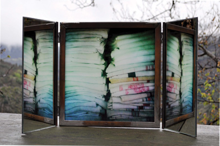 To shape the secret as we build an altar. Project builds on a basic square 30/30 with two door' sides topped with mirror. When I was a child, I was fascinated by the polyptique of the Last Judgment, of Van der Weyden, to Beaune.